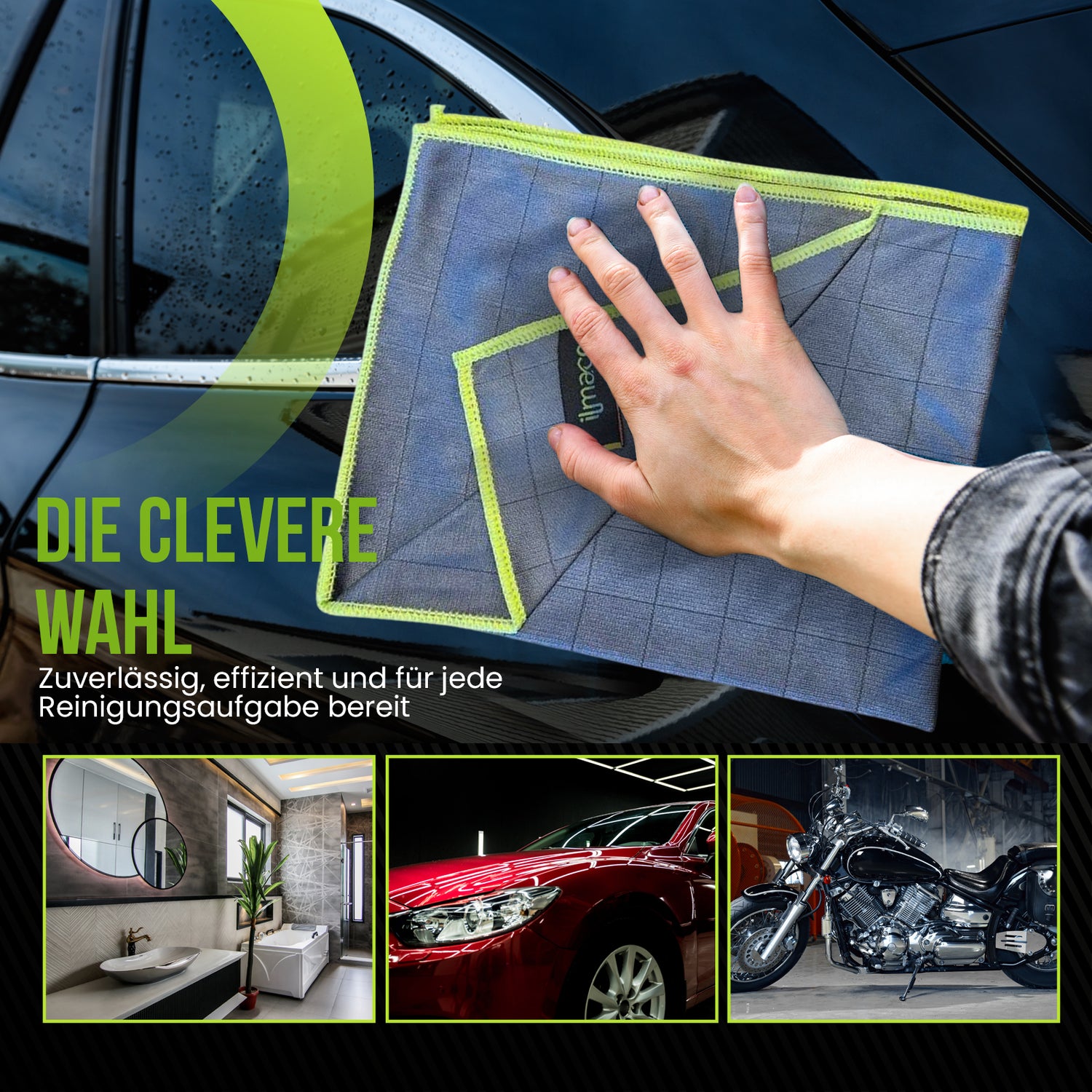 Sprühflaschen und Carbon Mikrofasertüchern die speziell für die Reinigung und Pflege von Oberflächen entwickelt wurden.